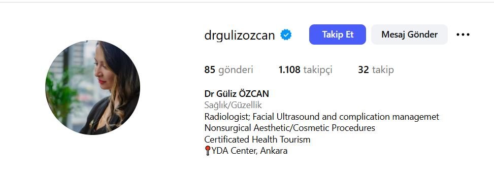 Uzm. Dr. Güliz Özcan; Radyoloji uzmanı olarak Yüz Ultrasonografisi alanında, eski yüz işlemlerine bağlı komplikasyon durumlarında teşhis ve Ultrasonografi eşliğinde tedavi yönetiminde vaka tecrübesi yüksek olan ve bu alanda öncü olan hekimlerdendir.